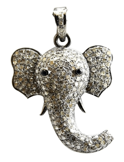 3.83ct Rose Cut Diamond Black Onyx Antique Look 925 Silver Pendant