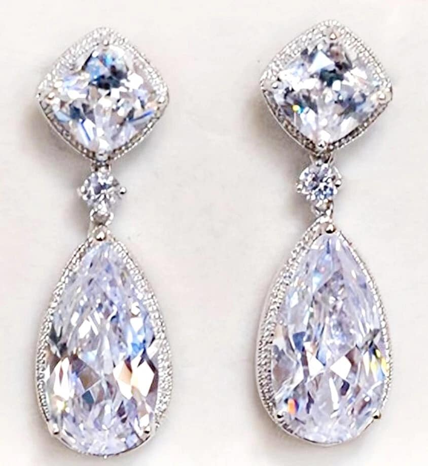 925 Silver Cubic Zircon Dangle Earrings | Drop Zirconia Earrings | Gift for Her