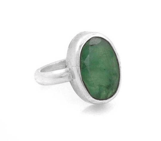 Natural Green Beryl Gemstone Silver Ring, Certified Gemstone Silver Ring Band, Green Beryl Substitute of Emerald Ring