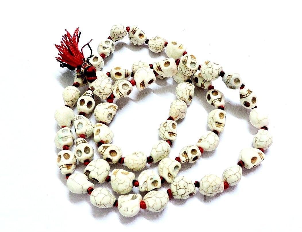 Skull Mala raises curiosity and even used by magicians during their shows Useful in kali puja Nar mund mala is also called kapalamala or rundamala, is a garland of severed human heads and/or skulls. Good quality material. It is helpful in warding off negativity and helps in healing.
