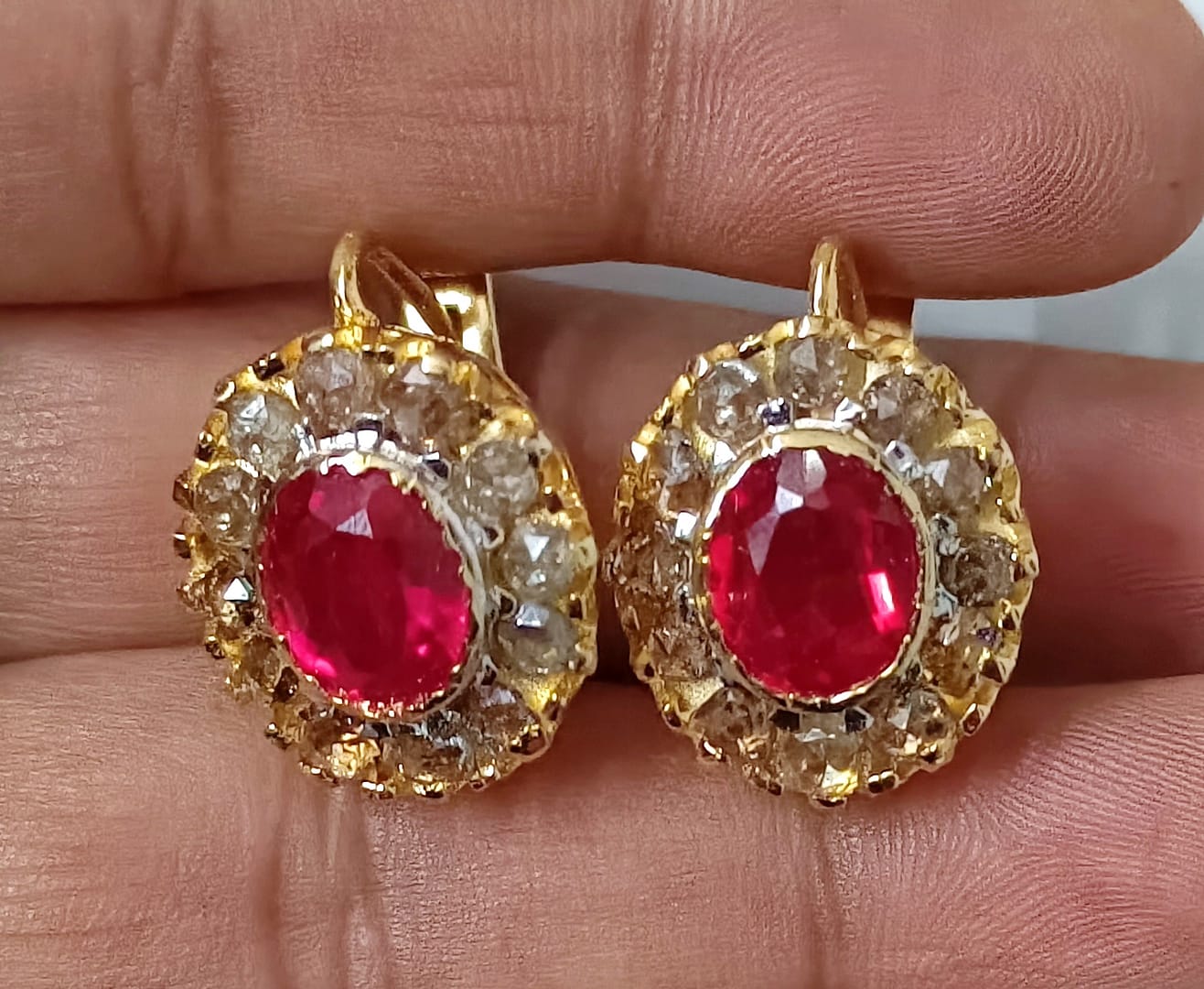 Rosecut Diamond 925 Silver Ruby Earrings Diamond Earrings Birthday Gift
