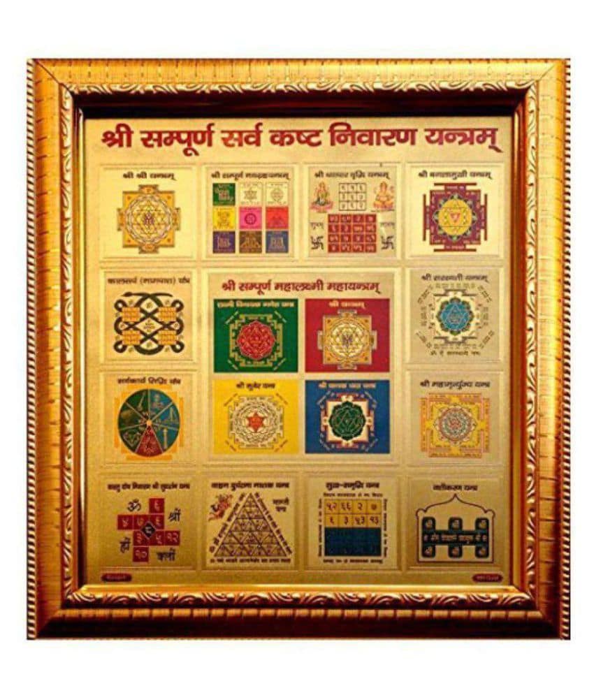 SHRI SAMPURNA SARV KASHTA NIVARAN GOLD PLATED YANTRA:- BIG SHRI SAMPURNA SARV KASHTA NIVARAN GOLD PLATED YANTRA WITH BEAUTIFUL FRAME IT IS BELIEVED THAT Sampoorna means complete. Sarva means all. Kastha means difficulties and pain. Nivaran means removal. Sampoorna Kasht Nivaran Yantra is to remove all obstacles and bestow you with success and prosperity.
