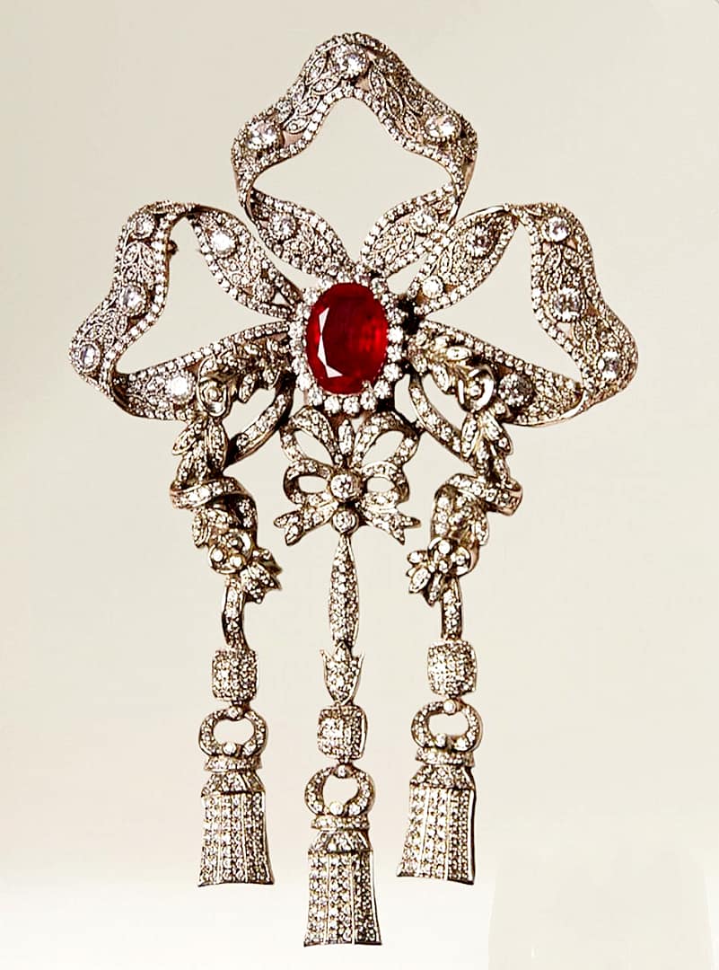 Vintage Replica Cubic Zircon 925 Sterling Silver Ruby Brooch Gift’s For Mom